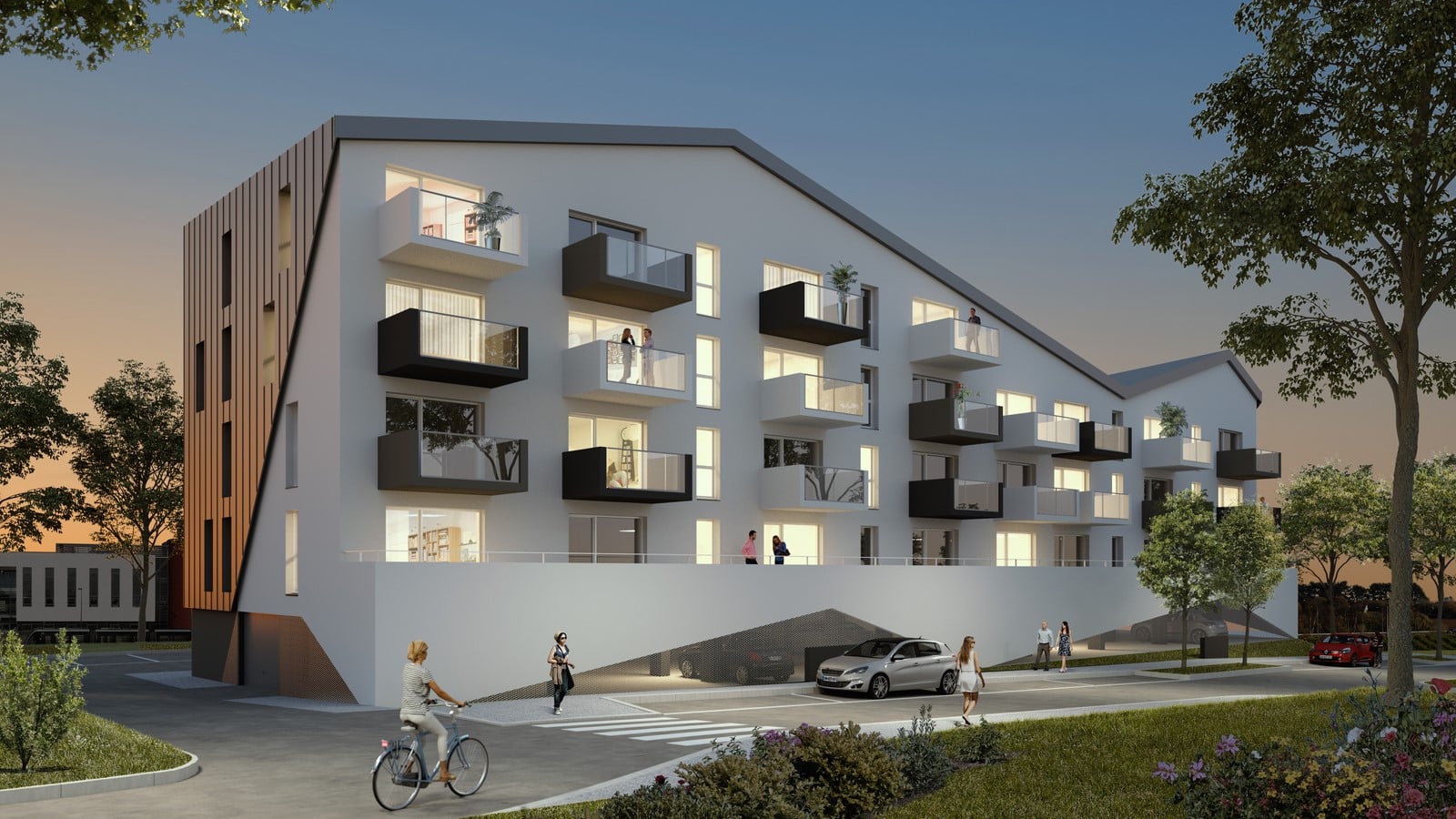 L’architecture contemporaine du bâtiment allie toiture métallique et matériaux de qualité, elle offre à chaque résident un cadre de vie unique et le sentiment de vivre dans un espace propre à chacun.